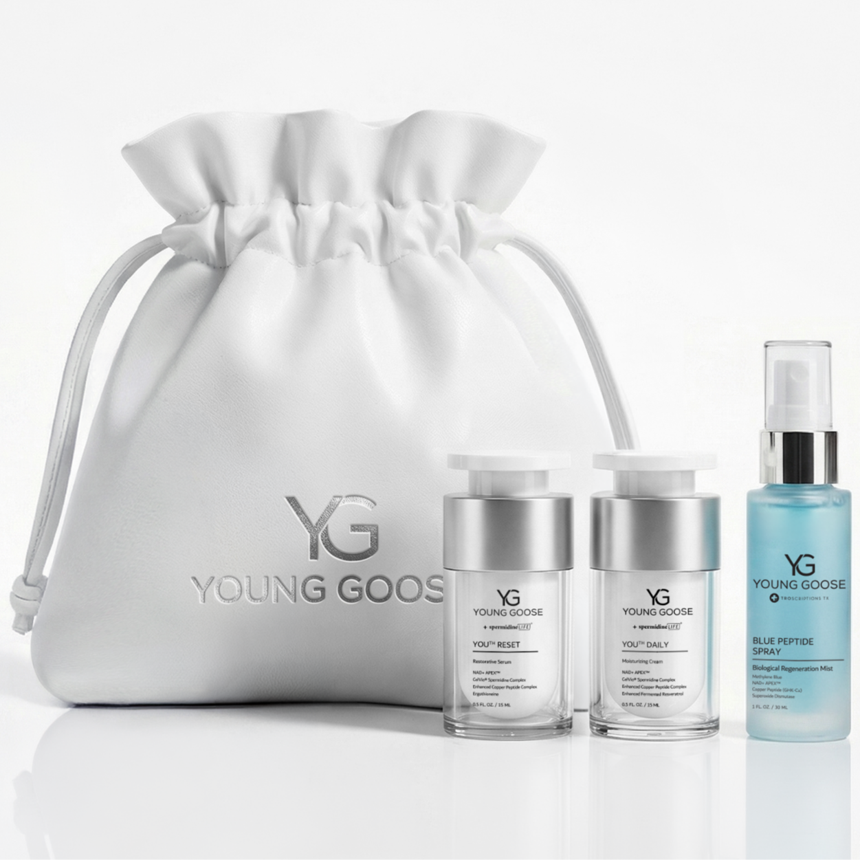 Young Gooseâs Motherâs Day Gift Sets are structured as complete skin longevity protocols, designed to support repair, cellular energy, and long-term skin function.Â