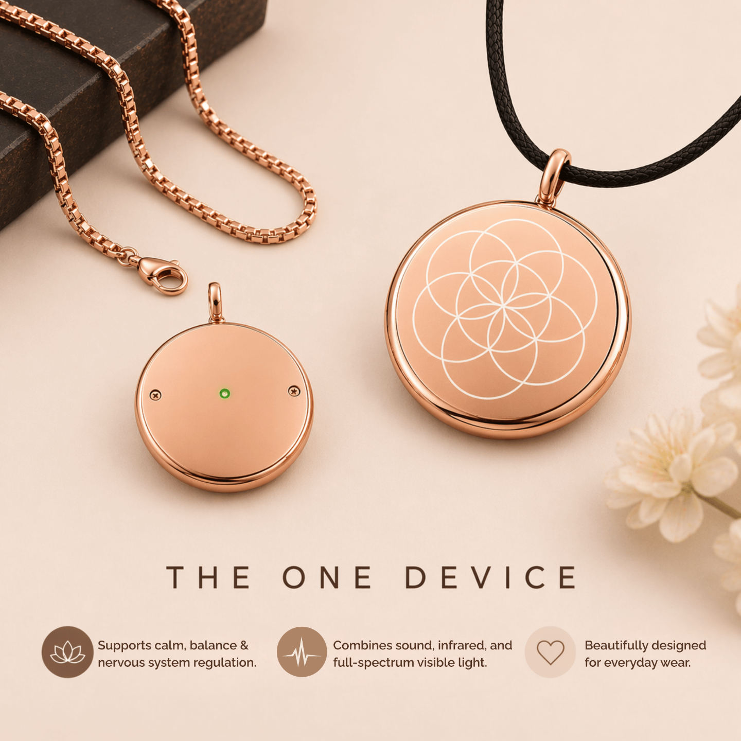 The One Device was created for women like her: a simple, beautiful way to bring more calm, balance, and energy into everyday life.